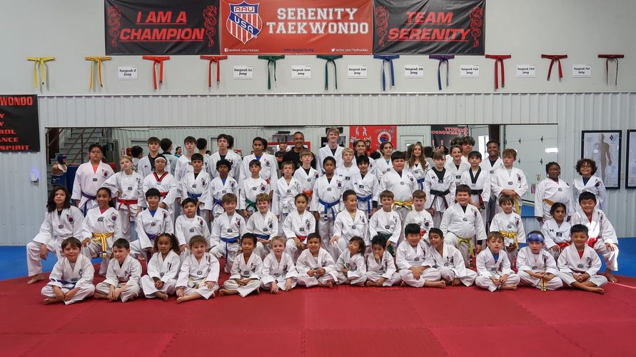 At Serenity, we’re all about bringing families together in a fun, welcoming, and safe place to enjoy Taekwondo. Our friendly instructors love helping kids, teens, and adults grow in confidence, respect, and healthy habits—while making great memories along the way! From our playful Kids Taekwondo classes to exciting Family Martial Arts sessions, and even advanced training for athletes ready to take the next step, there’s something here for everyone. Together, we practice Taekwondo Taegeuk Poomsae (forms) and Olympic-style sparring, all in an encouraging environment where students can learn, grow, and shine.
